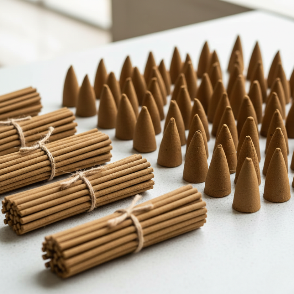 Traditional dhoop sticks and cones crafted to create a calming and spiritual environment with rich and long-lasting fragrance.